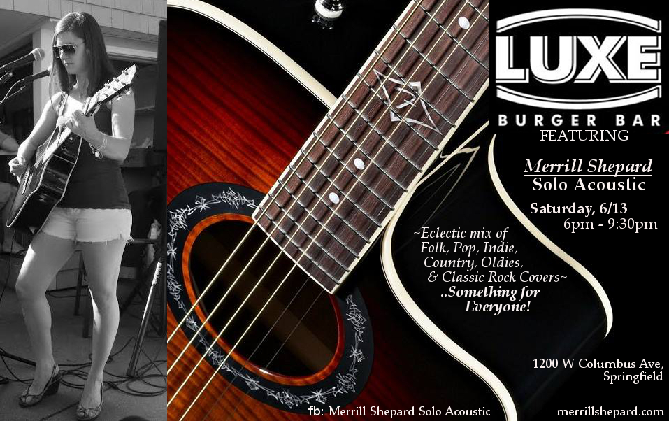 Catch my set from 6pm – 9:30pm tonight at Luxe Burger Bar on West Columbus Avenue in Springfield!