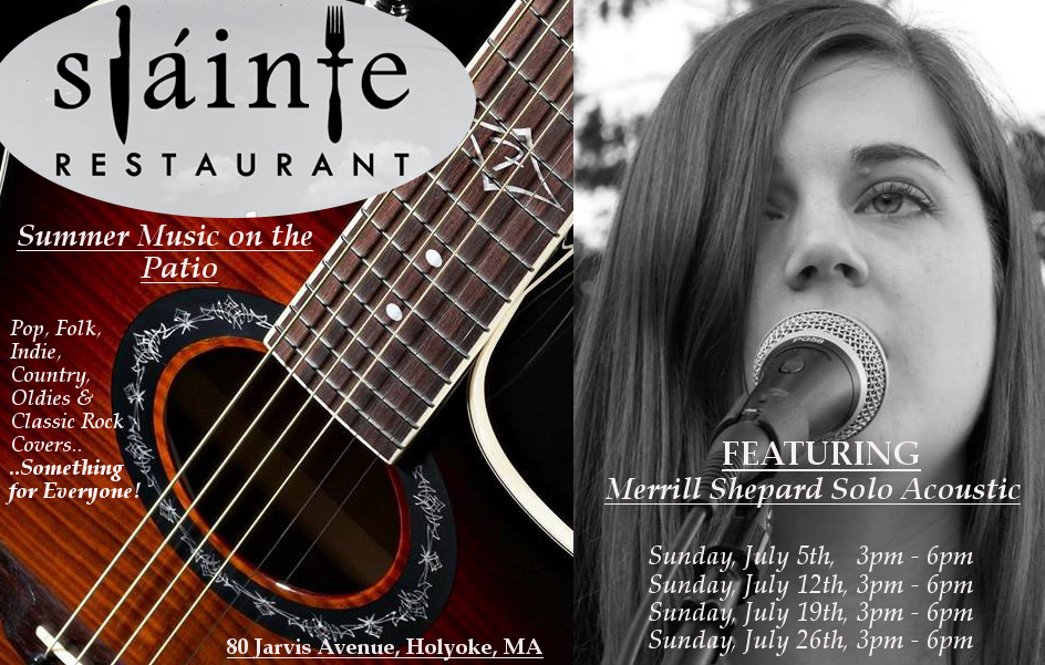 Sadly, we were either rained out or threatened by rain the last couple weekends but be on the lookout for the Merrill Shepard Solo Acoustic show on the patio at Slainte Restaurant in Holyoke, MA!