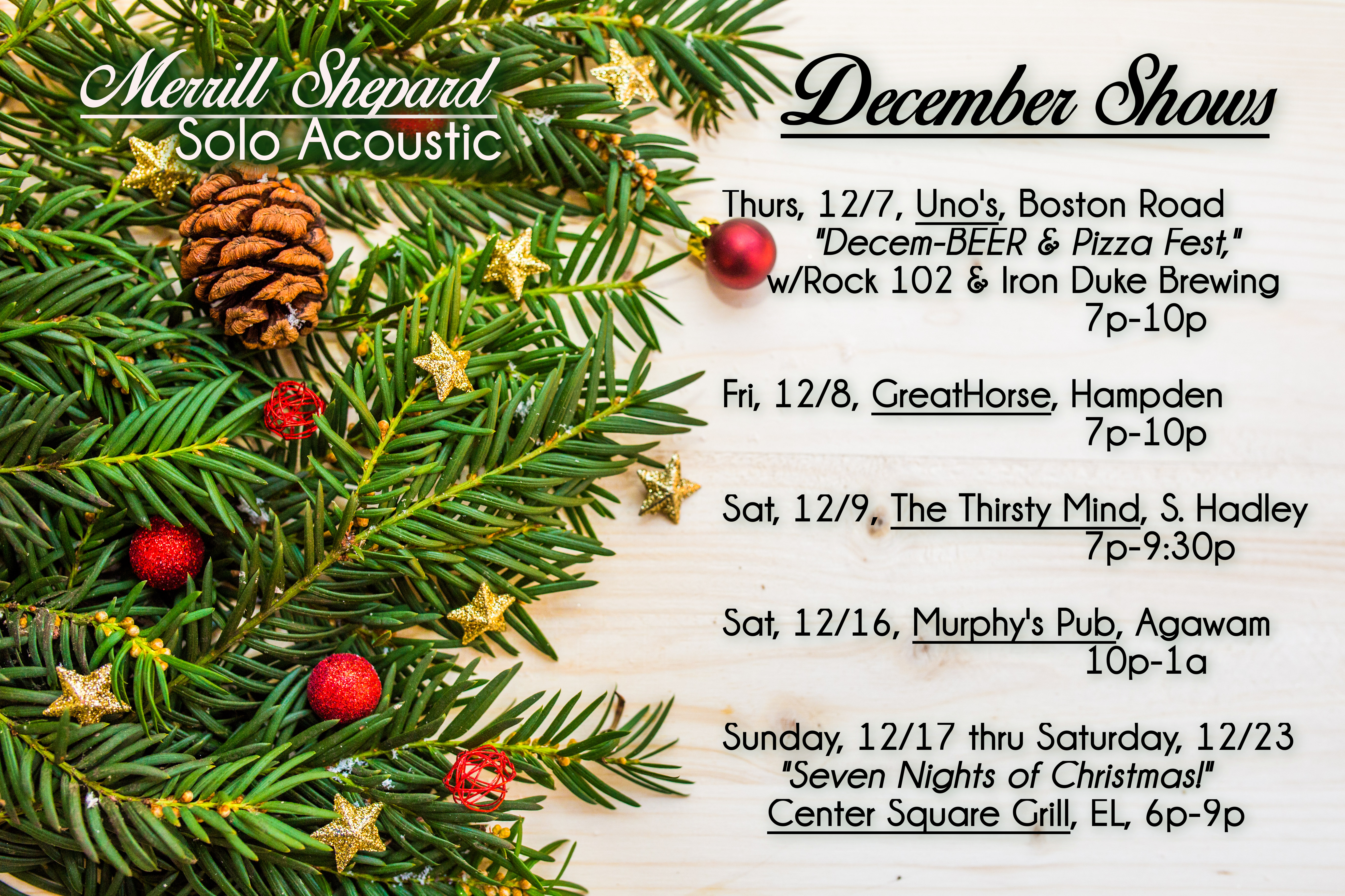 The holidays are upon us once again – Here is a list of venues where you may kick back with some live music and a drink following your holiday shopping!