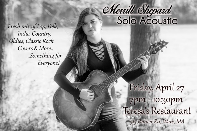 Friday night, 4/27, at Teresa’s Restaurant in Ware, 7pm – 10:30pm!