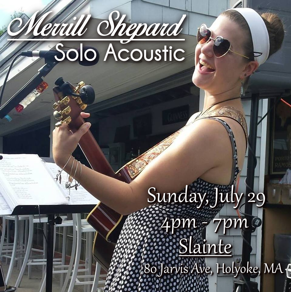 Sunday afternoon, 7/29, join us on the beautiful patio at Slainte Restaurant in Holyoke where I will happily serenade you with a hand-picked selection of acoustic covers from 4pm – 7pm!