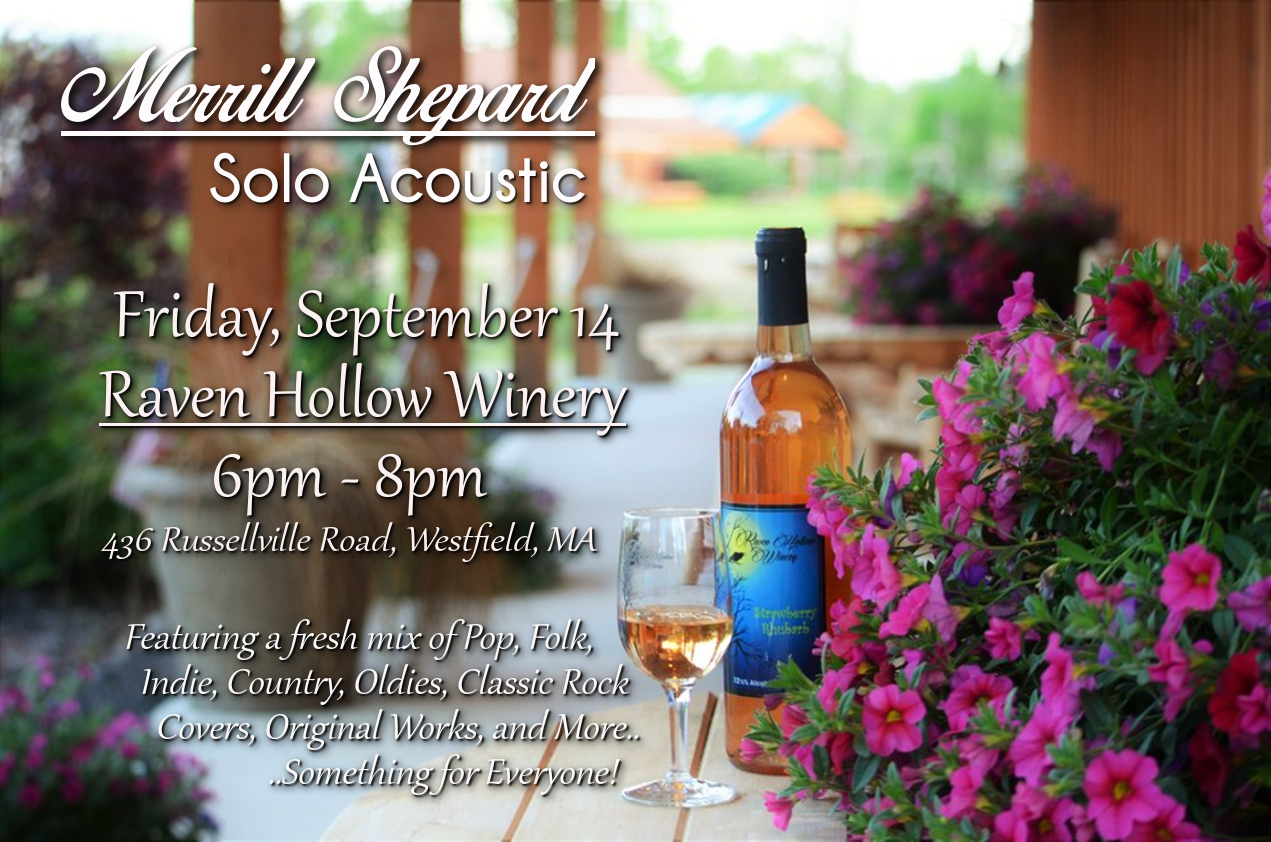 Friday night, 9/14 – Grab a snack and join us under the tent at beautiful Raven Hollow Winery in Westfield!