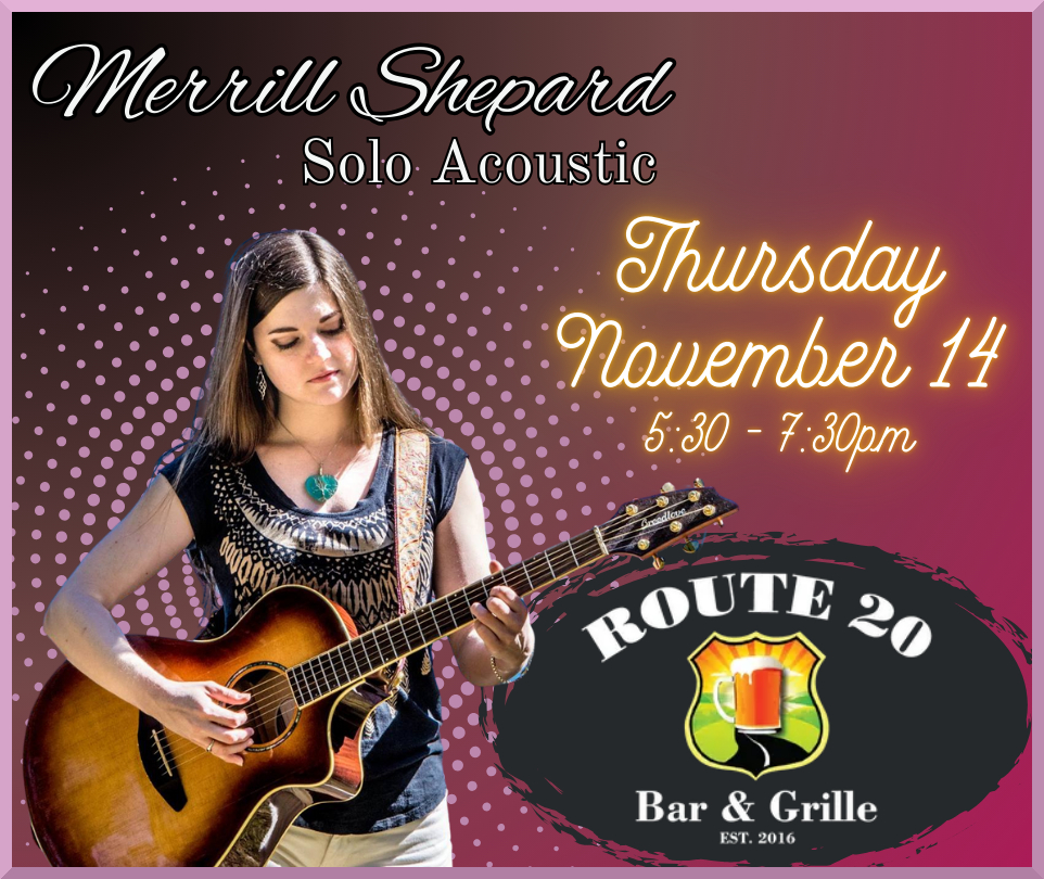 THURSDAY, 11/14 – Surprise! Last minute booking at the Route 20 Bar and Grille in Wilbraham!