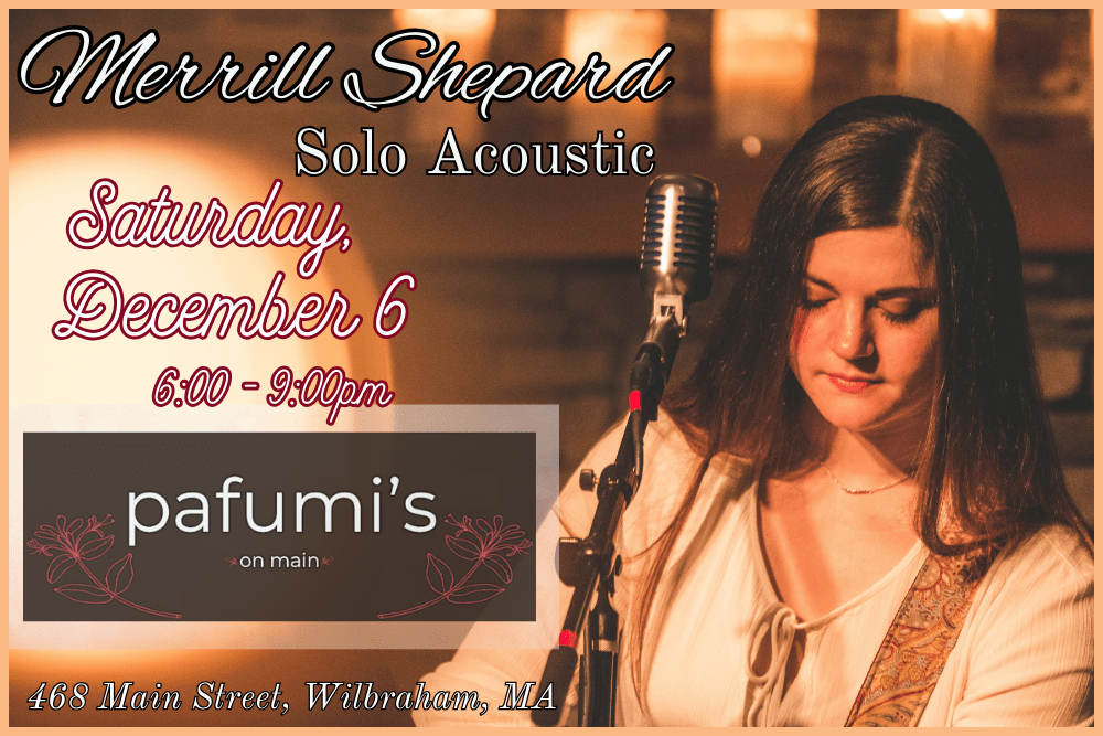 SATURDAY, December 6 – Catch my acoustic set at Pafumi’s on Main Street in Wilbraham!